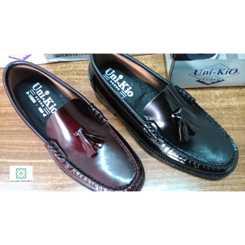 Pompon espagnol noir ou bordeaux du 39 au 46. Semelle en cuir pour chaussures de qualité au sol.