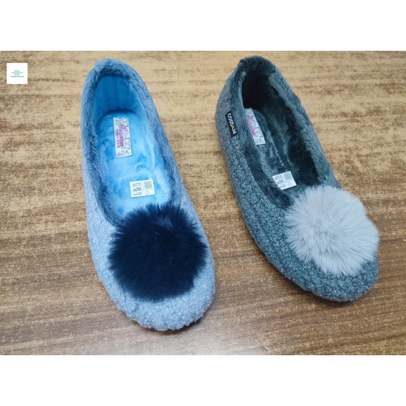 Chausson plat fuji Cosdam en deux coloris, modèles gris ou bleu clair disponibles dans les tailles 35 à 41 de qualité.
